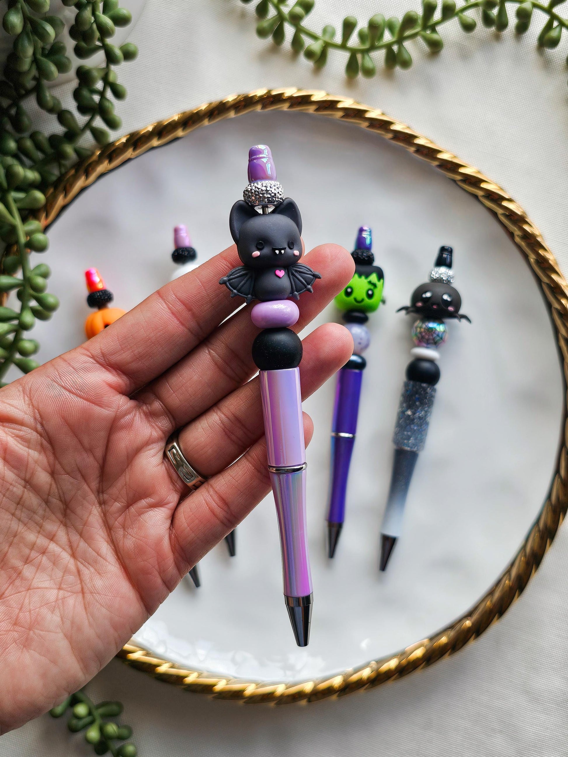 Our newest addition, silicone beaded pens! This collection is from our Booked & Bewitched drop which is why it‘s giving all of the spooky vibes :)