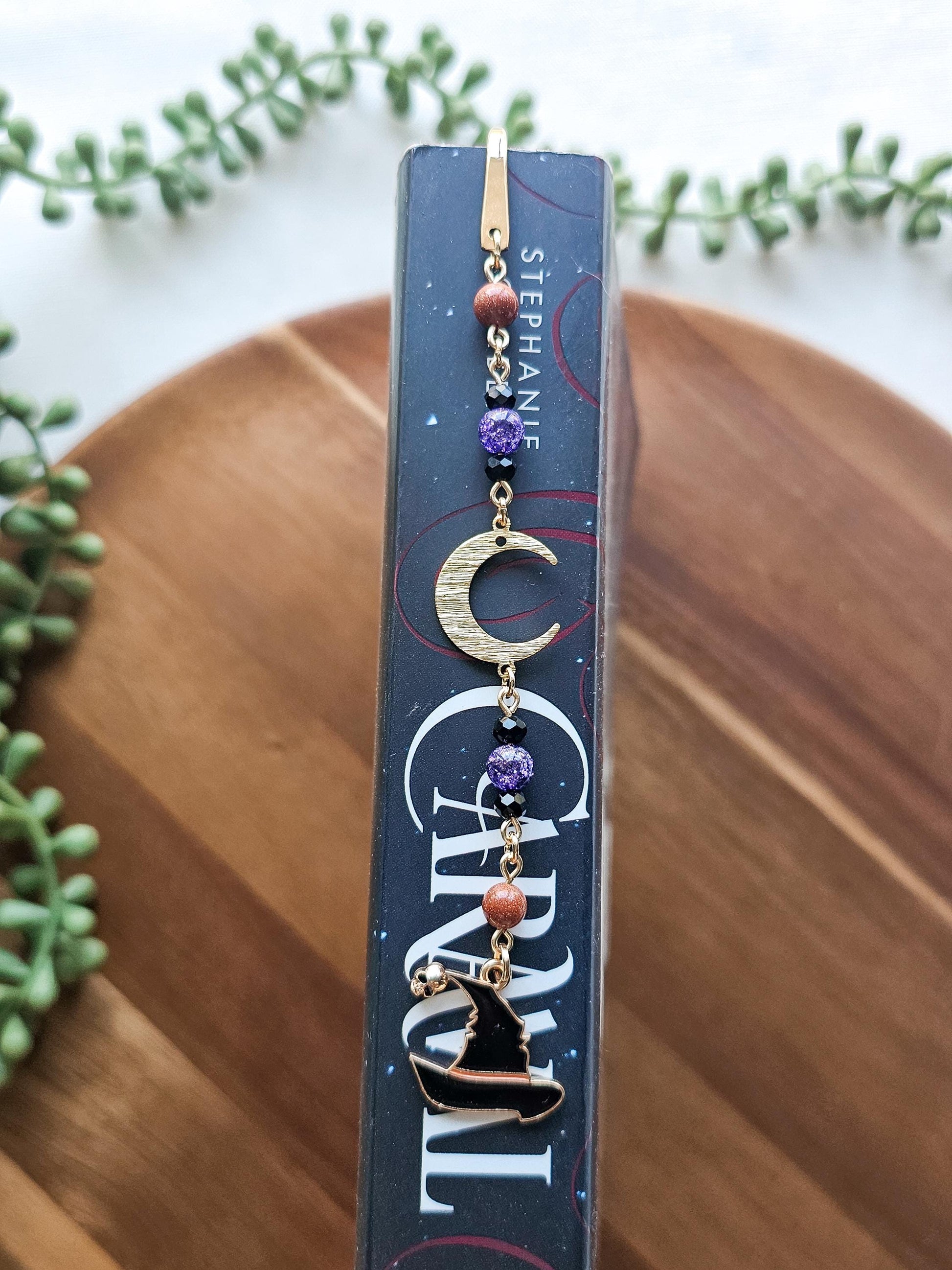 One of our best selling designs, our beaded charm bookmarks! This particular one is witchy themed.