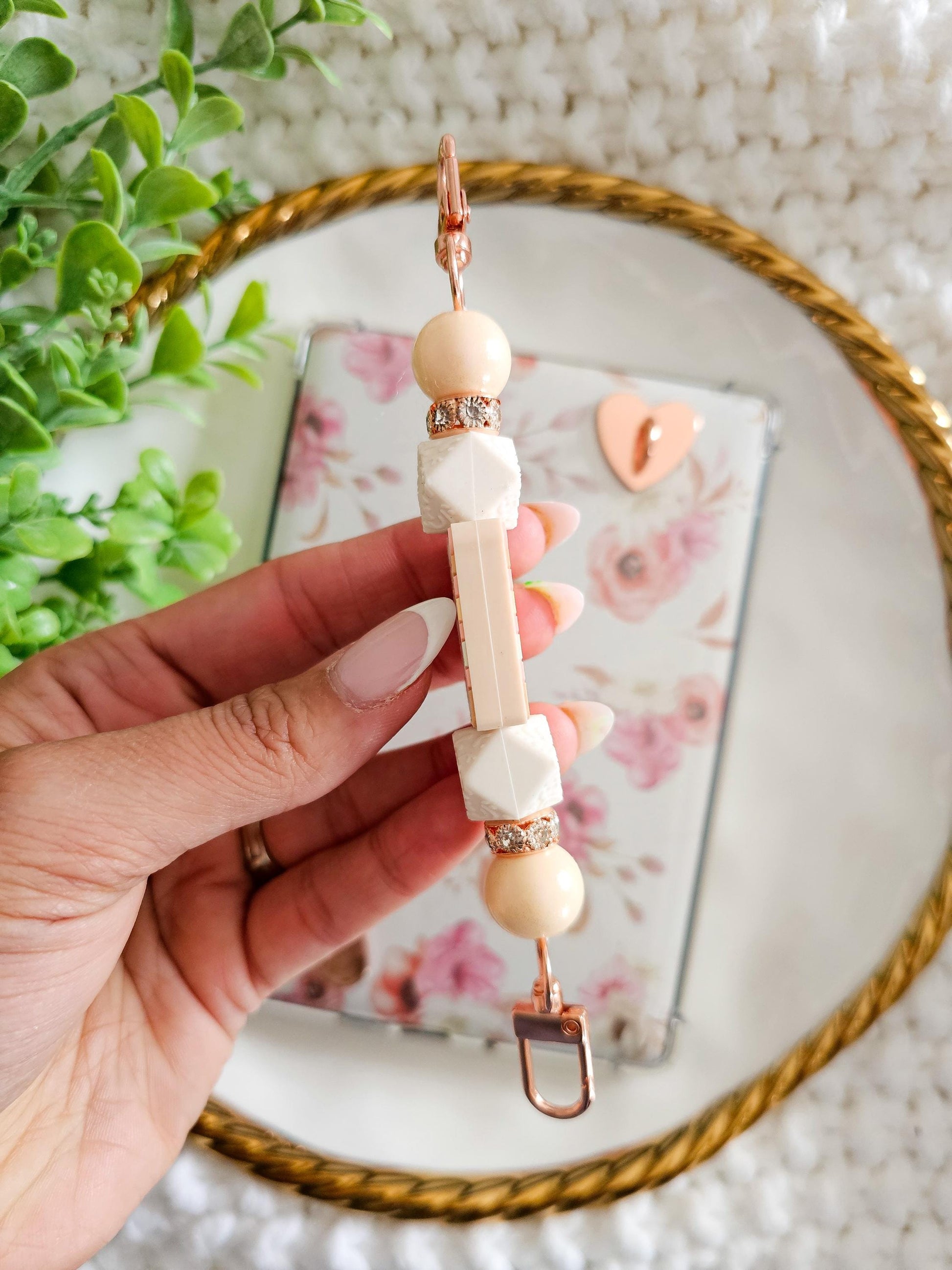 Soft, feminine, and effortlessly bookish, the Book Babe Kindle Strap is made for readers, who love light, cozy, aesthetics with a touch of charm. Featuring a delicate book-shaped focal bead paired with creamy neutrals and subtle yellow shimmer beads, this design feels fresh, floral, and perfect for springtime reading.