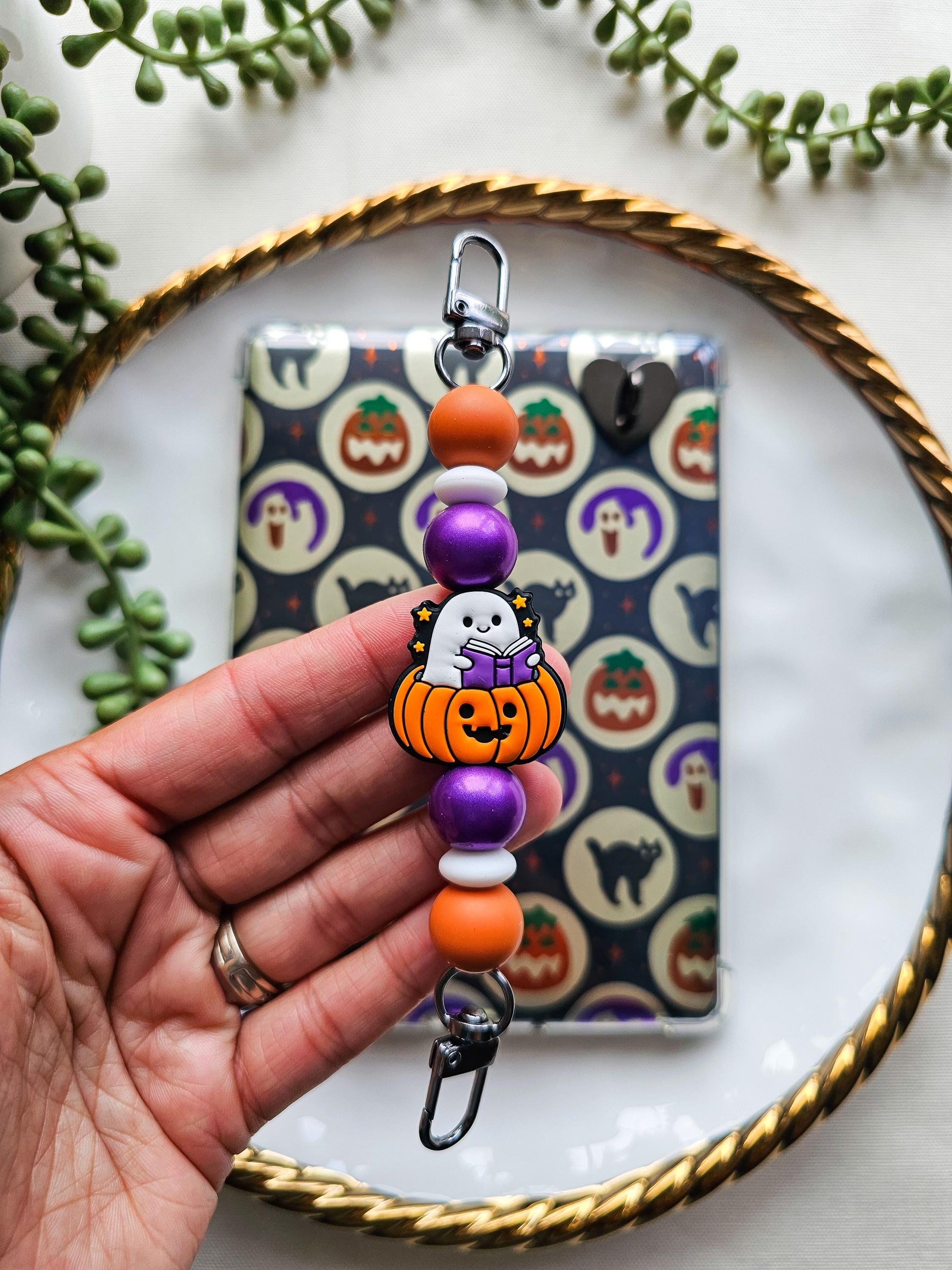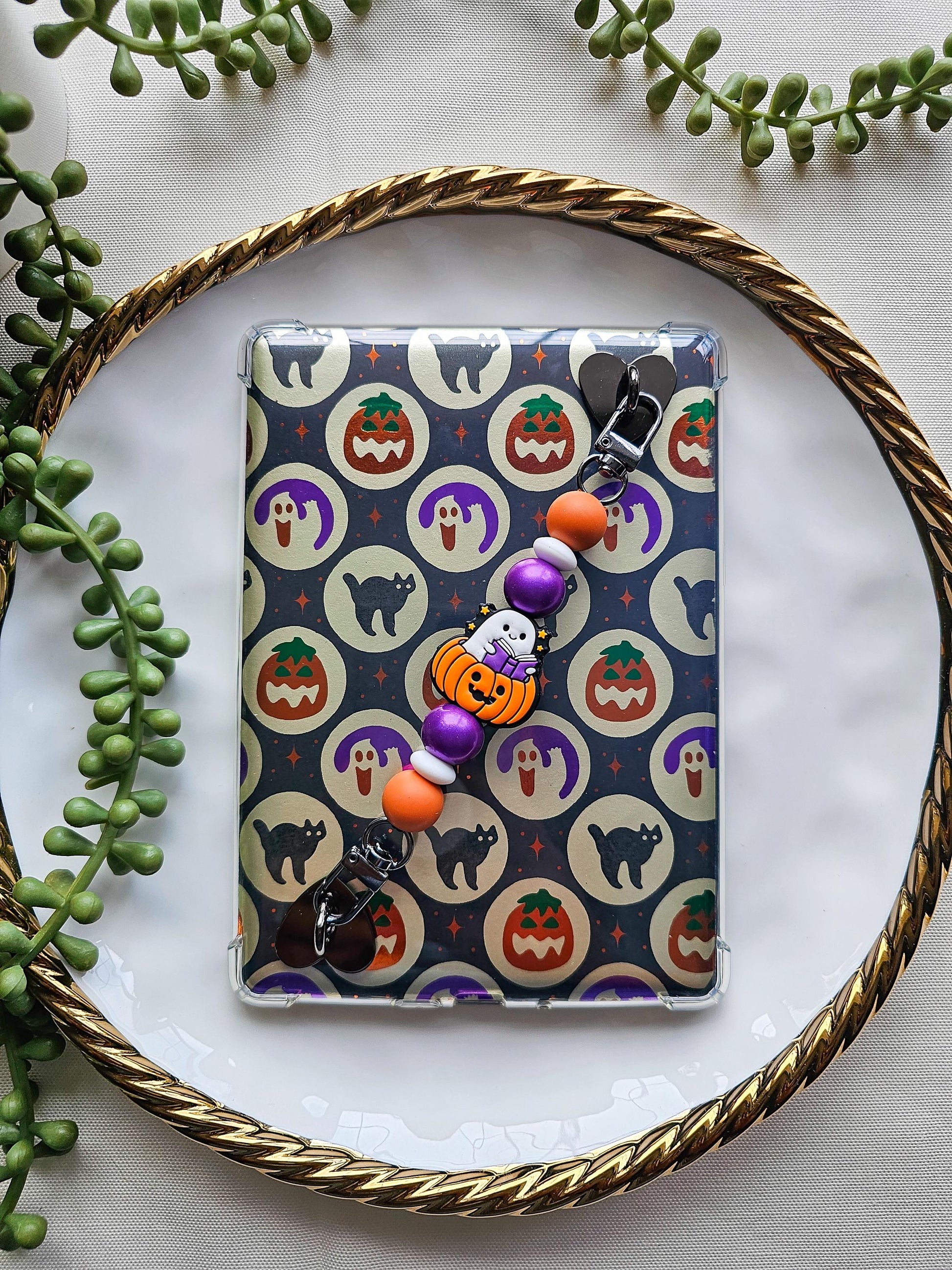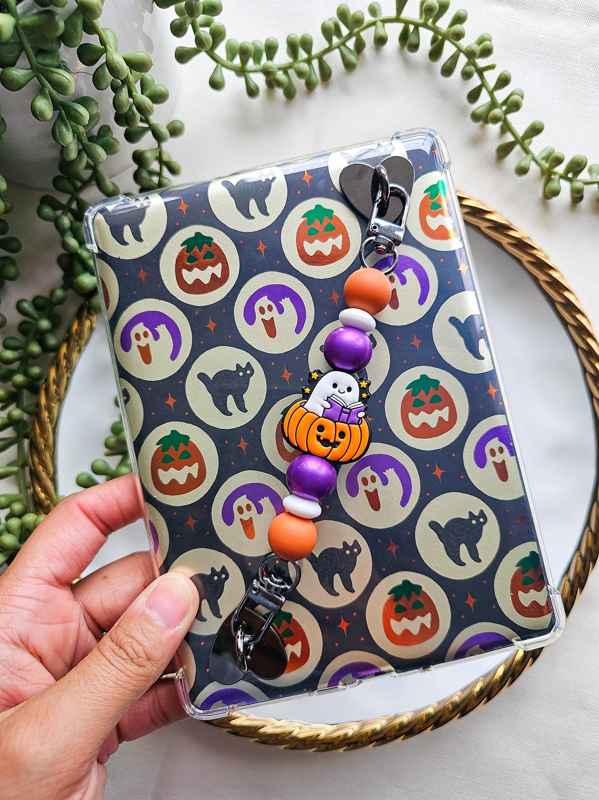 Featuring a sweet ghost reading inside a pumpkin, paired with rich purple and warm orange beads, this strap is made for readers who love spooky stories, cozy fall nights, and autumn aesthetics. Whether you're deep into a Halloween romance, a paranormal fantasy, or a cozy fall reread, this strap adds the perfect festive touch to your Kindle setup.
