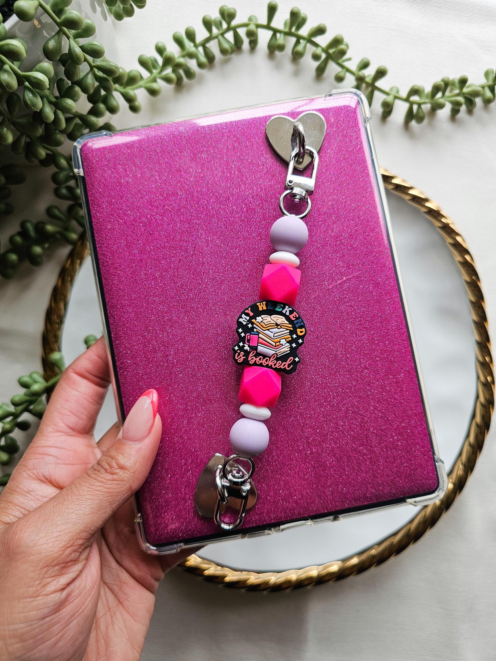 For readers who happily cancel plans in favor of one more chapter, this interchangeable Kindle strap features a playful "my weekend is all booked" focal bead paired with soft lilac and bold hot-pink beads.