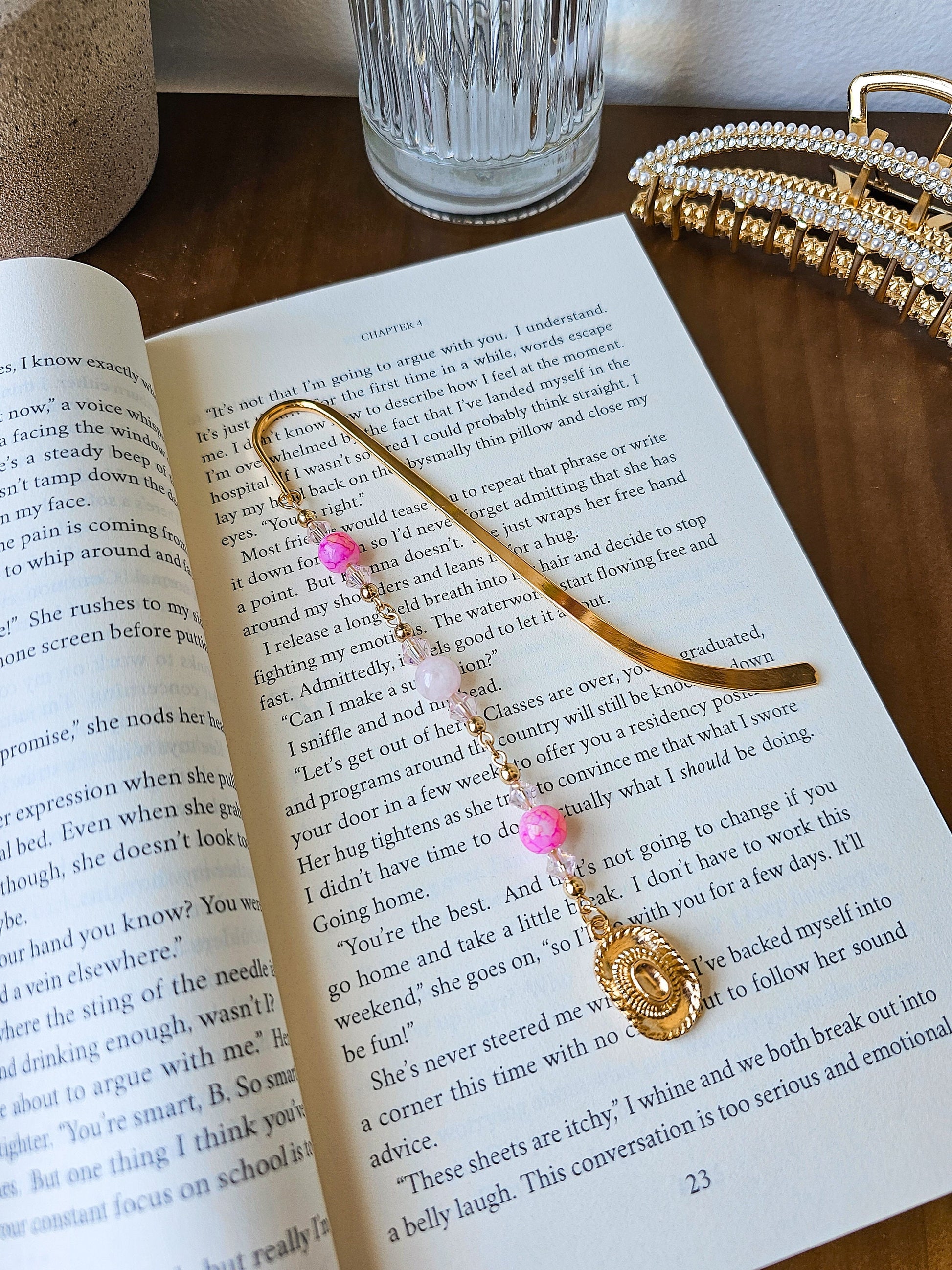 Featuring a gold cowboy hat charm paired with delicate pink crystal accents, this piece brings a romantic western touch to your reading routine. Simple yet intentional, it's perfect for marking your place or adding a feminine accent to your bookshelf.