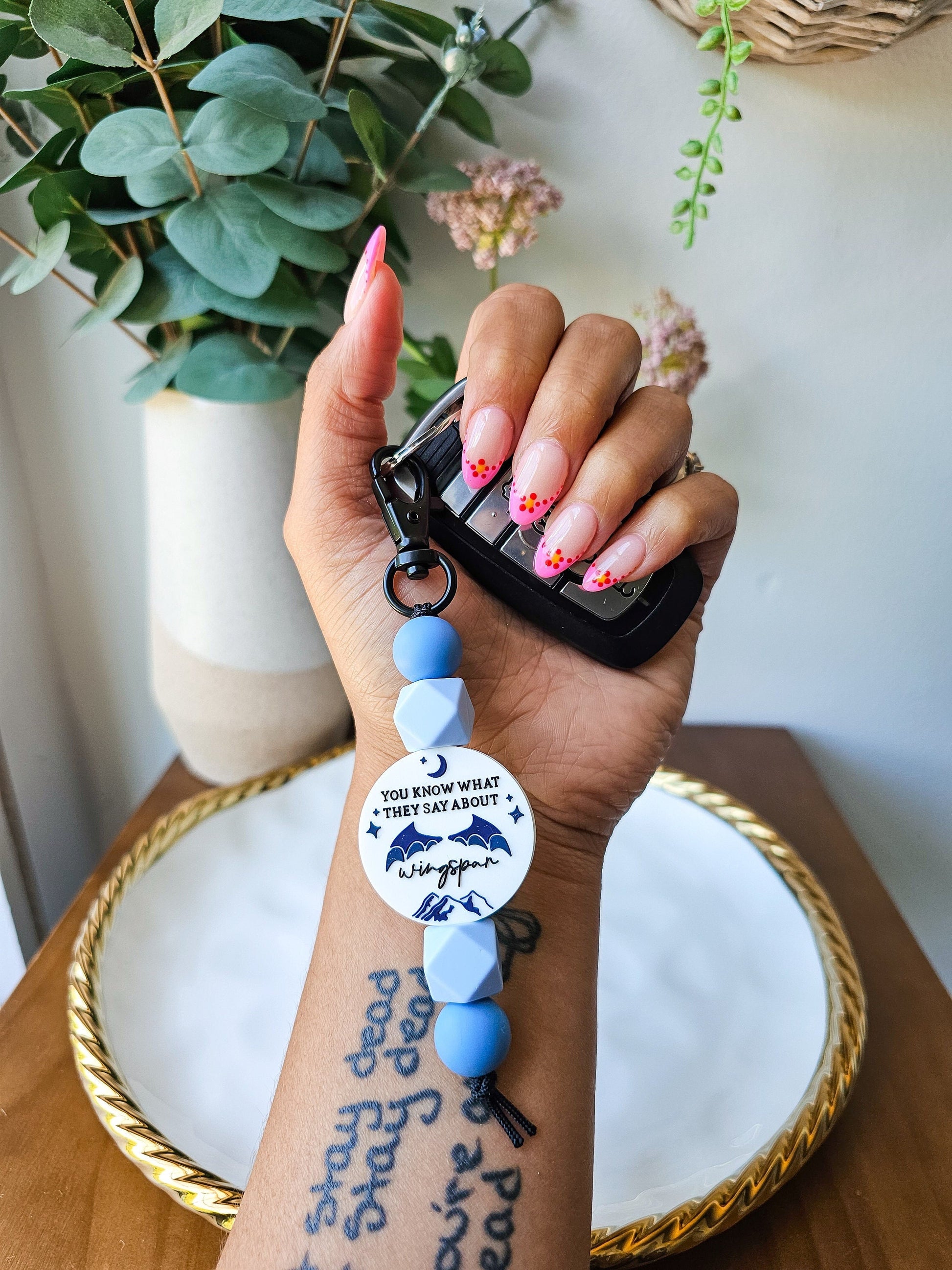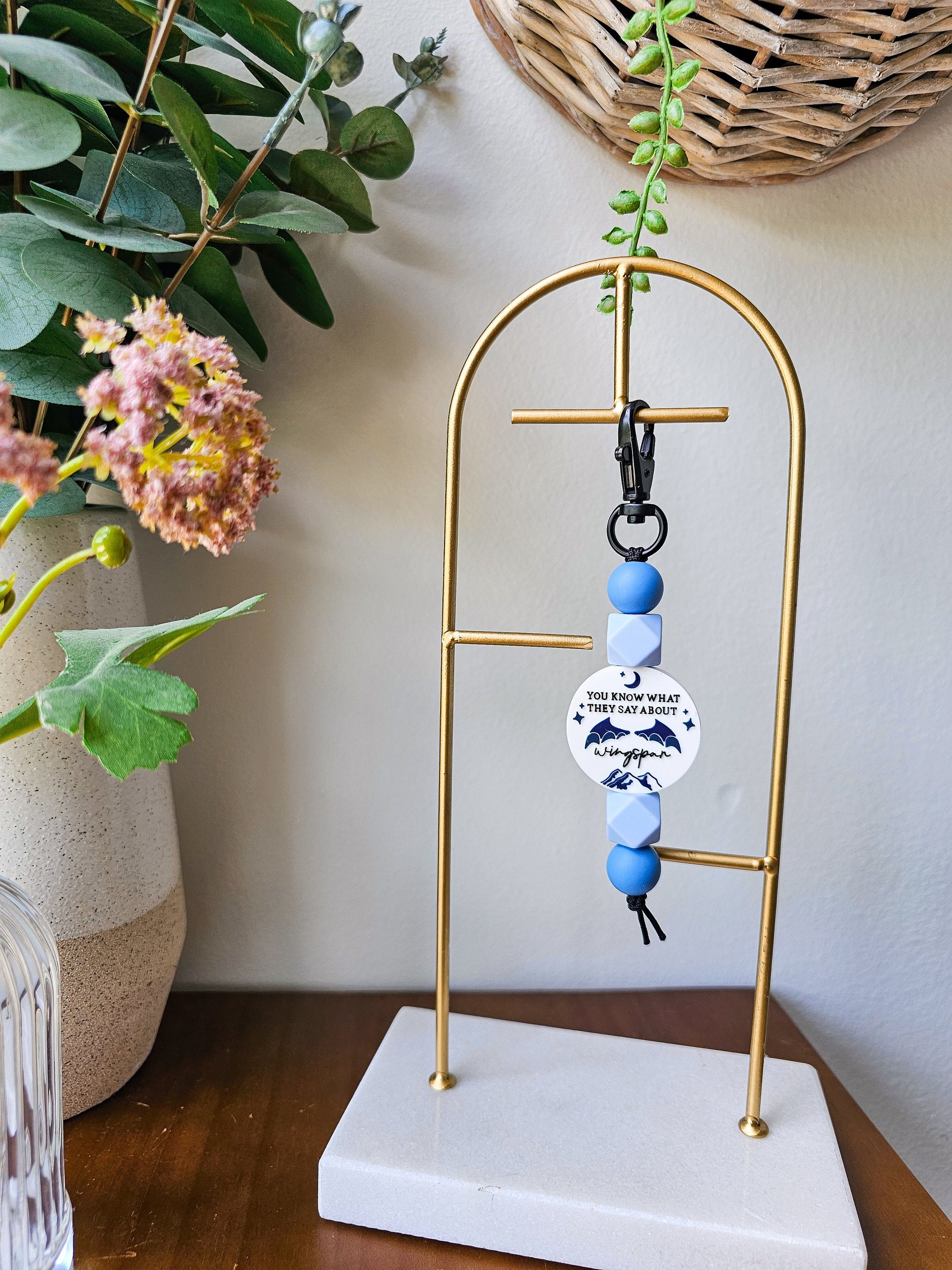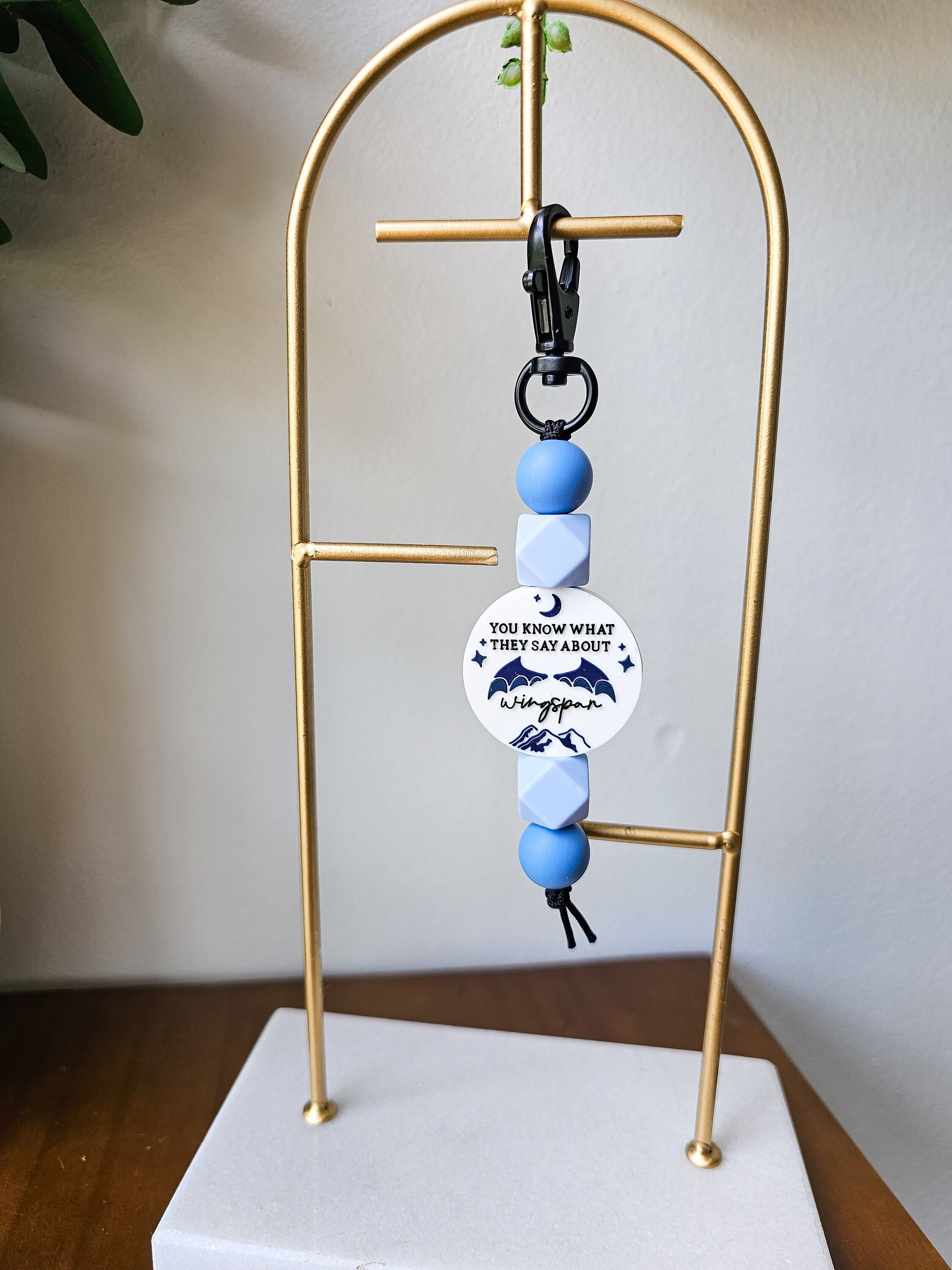 A super cute silicone beaded keychain with a You Know What They Say About Wingspan focal bead. The perfect accessory that‘s not only functional, but stylish too! Simply attach to your keys, purse or backpack and be prepared for tons of compliments <3